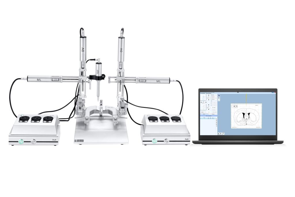 Az automatizált sztereotaxikus eszköz számítógéppel vezérelve finomítja az egerek és a patkány fejének helyzetét. Az Atlas integráció és az intuitív mozgásvezérlés nagy pontosságot, nagy áteresztőképességű elektrofiziológiát és sztereotaxiás injekciókat tesz lehetővé. A rágcsálók sztereotaxiás műtéte során az állat fejét tökéletesen vízszintes helyzetben megfelelően rögzítheti.