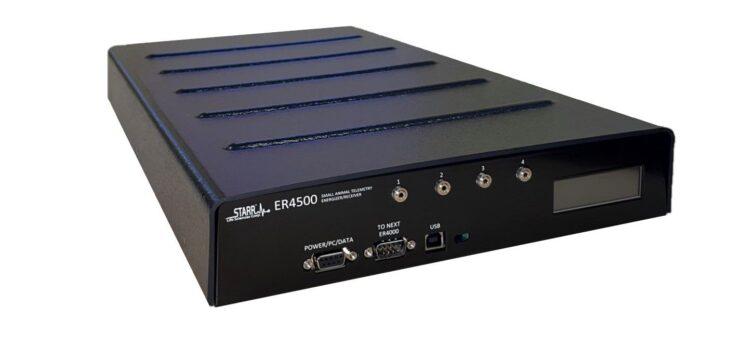 Az ER4500 vevő az Emitter-Telemetriai Rendszer szükséges eleme, ahol egy (1) vevőnként csak egy (1) emittert rendelhetünk hozzá az egyházas rágcsálók aktív adatgyűjtése során. Vevő méretei: 50,8 cm x 25,4 cm x 6,35 cm.