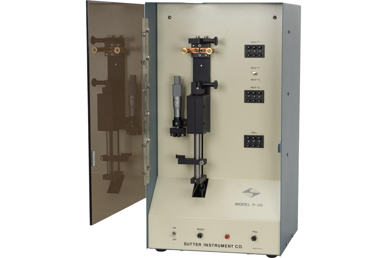 A Sutter Instrument P-30 vertikális pipetta húzója alapvető mikropipetták és patch-type pipetták gyártására tervezték. Megbízható, egyszerű és gazdaságos, a P-30 ideális választás tanulólaboratóriumok, oktatási létesítmények és minden olyan környezet számára, ahol komplex programozás nélküli robusztus pipettahúzó megoldásra van szükség.
