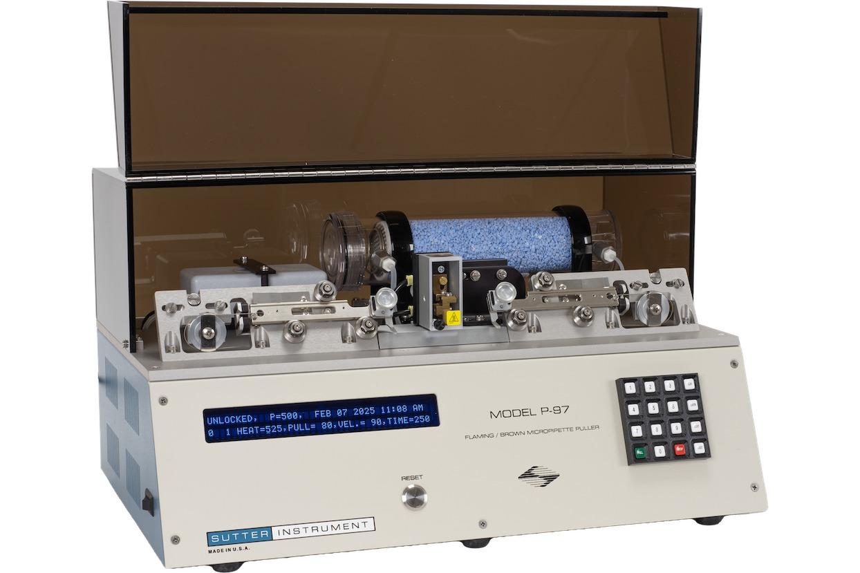 A Sutter Instrument P-97 Flaming/Brown pipetta húzója a bevált húzási mechanizmust a programozhatósággal ötvözi, rendkívül sokoldalú eszközt alkotva. A P-77/P-80 sorozatú pipetta húzókra építve, amelyek igazolták a pipettaprofilok teljes skálájának húzhatóságát, a P-97 páratartalom-szabályozó kamrával, vákuumfluoreszcens kijelzővel és kibővített programtárhellyel egészíti ki ezeket.