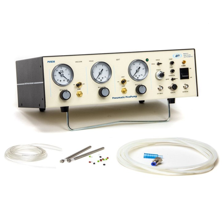 WPI's Pneumatic PicoPump carefully regulats air pressures for securing cells and injecting them with fluid. Designed to simplify intracellular injection and a variety of other microinjection tasks.