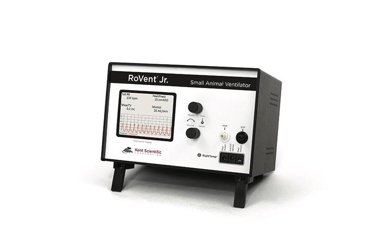 RoVent® Junior is the basic model ventilator for mice, rats, and guinea pigs weighing up to 1250 grams. The ventilator is fully automatic; simply enter the animal's weight and press the Run button. Ventilation control is performed by adjusting volume or pressure.
